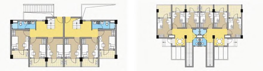 Ich war für die Gestaltung des Gesamtmasterplans, der Fassaden, der Gebäudegrundrisse verantwortlich und habe außerdem innovative Maisonette-Wohnungen im Dachgeschoss jedes Wohnheims entworfen.