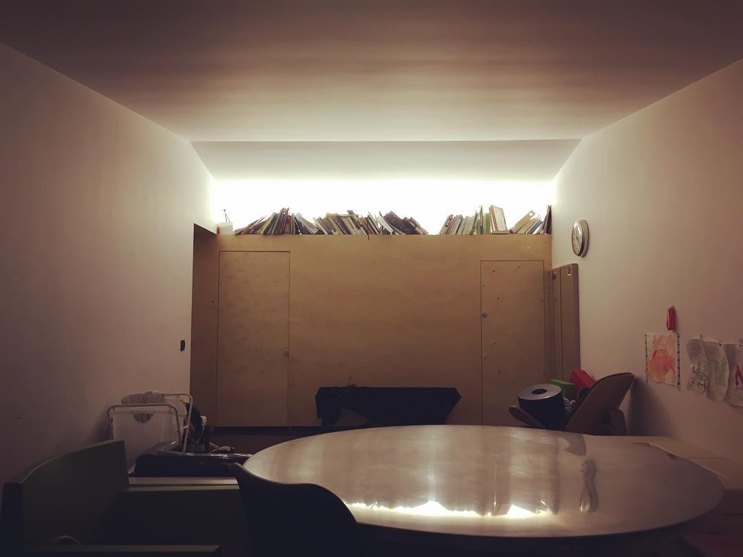 Auf der Rückseite der Box befindet sich mein zweistöckiges Arbeitsstudio – eine Etage für mich, eine für meine Frau. Oben auf der Box steht unser Bücherregal mit den Büchern, die wir gerne lesen.