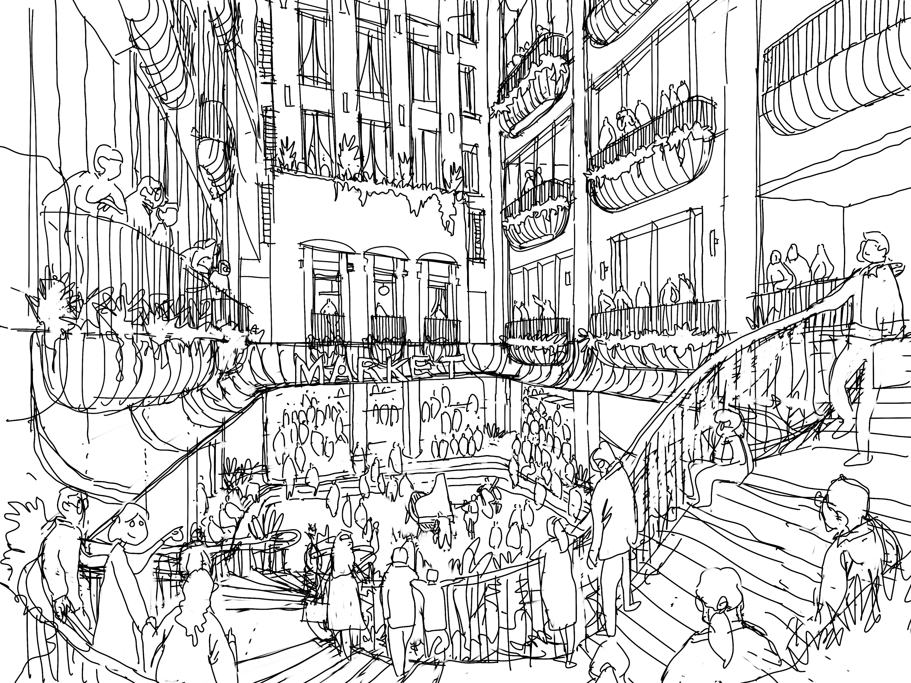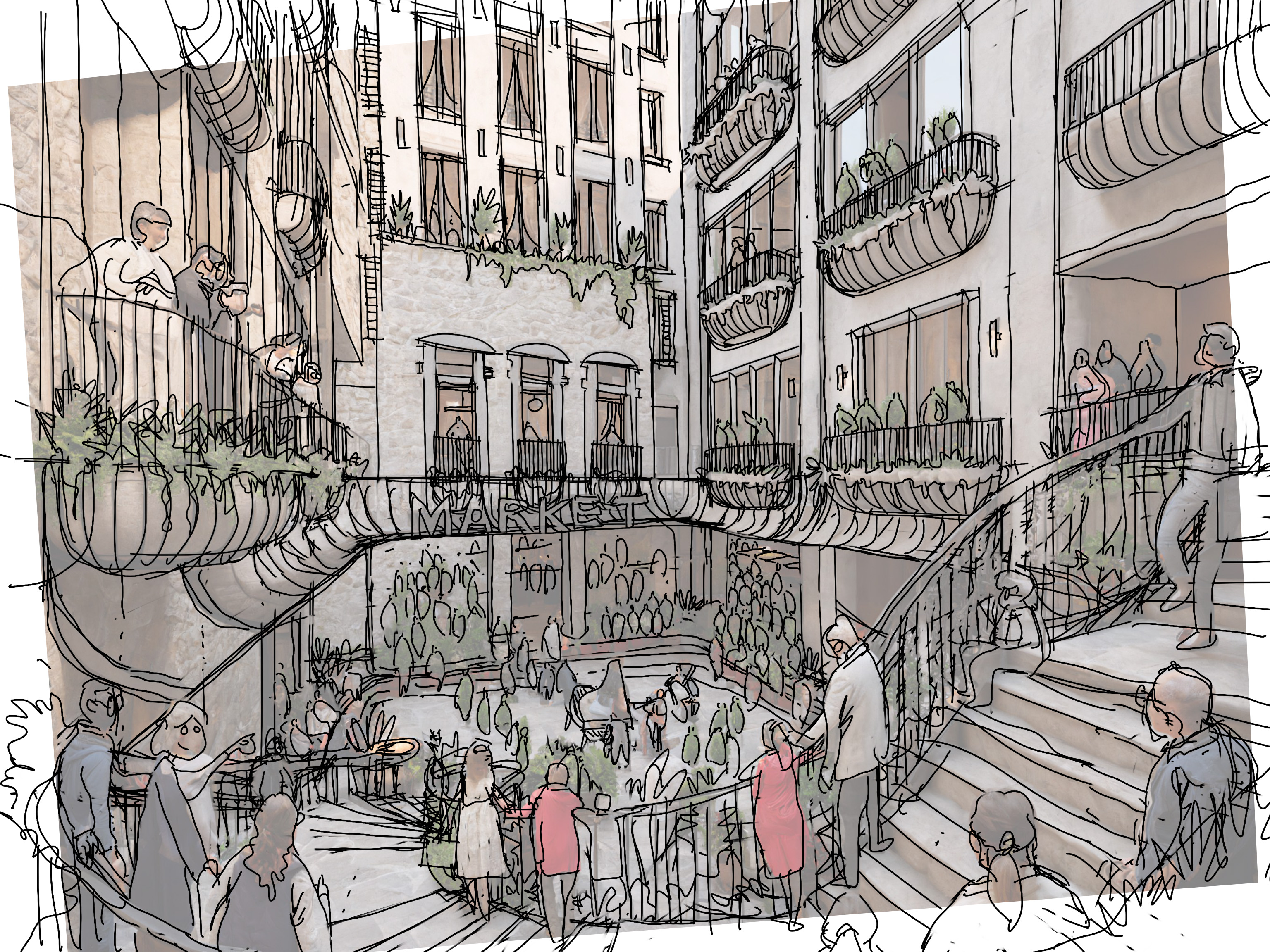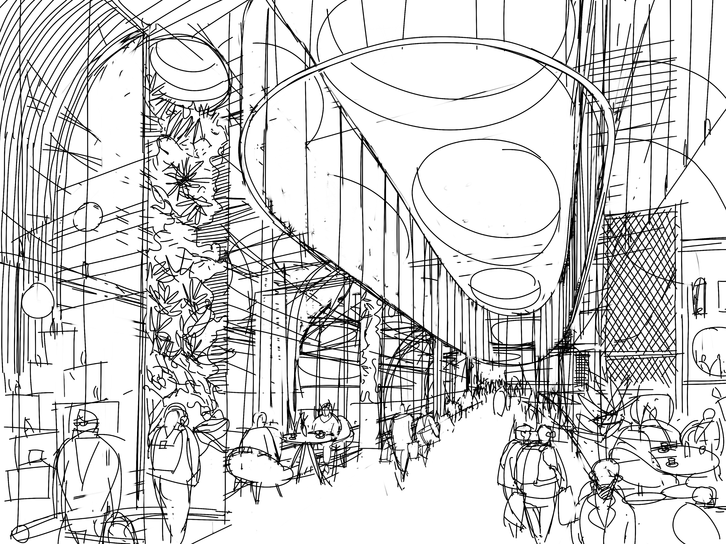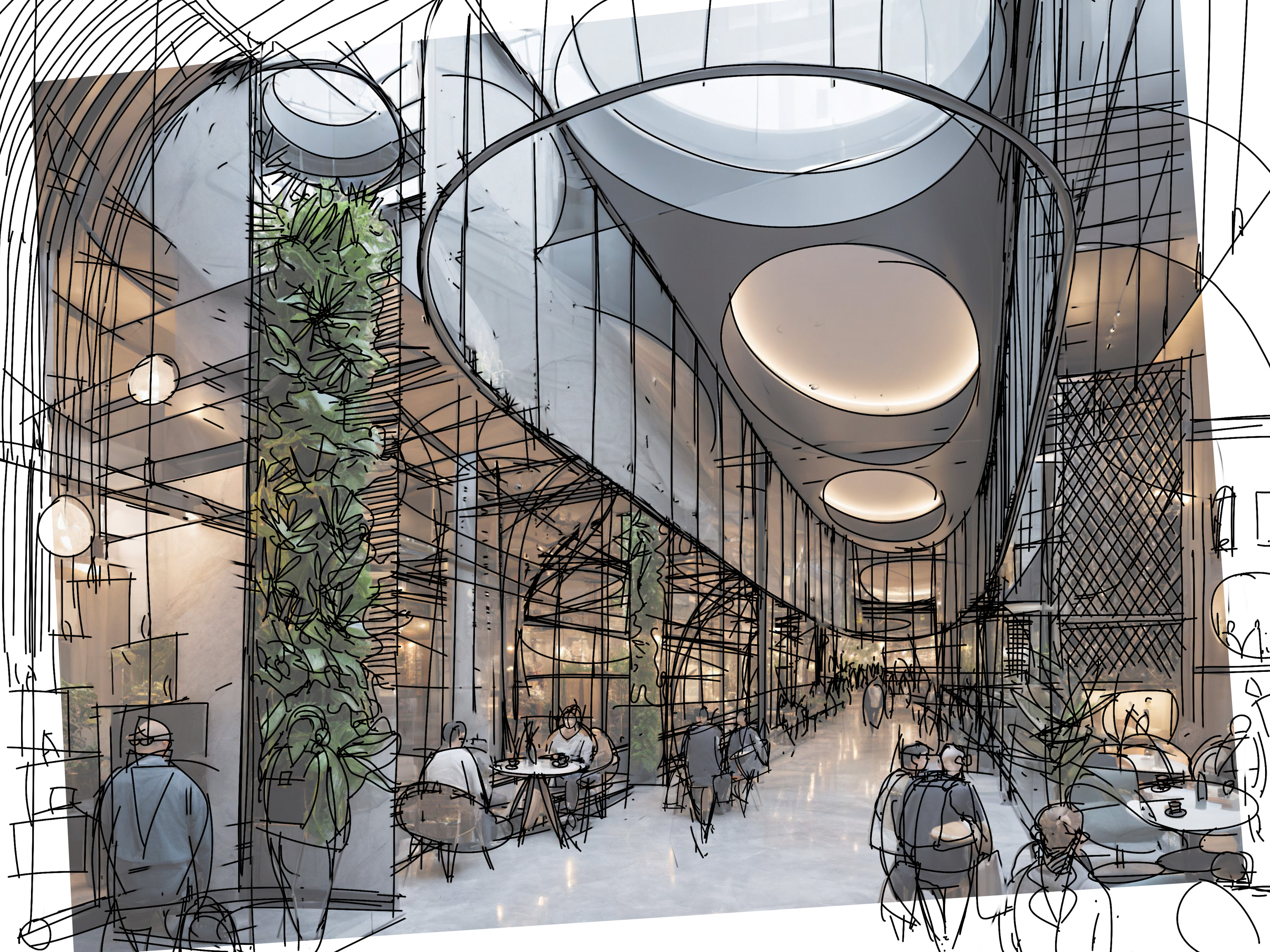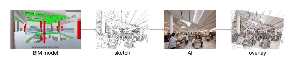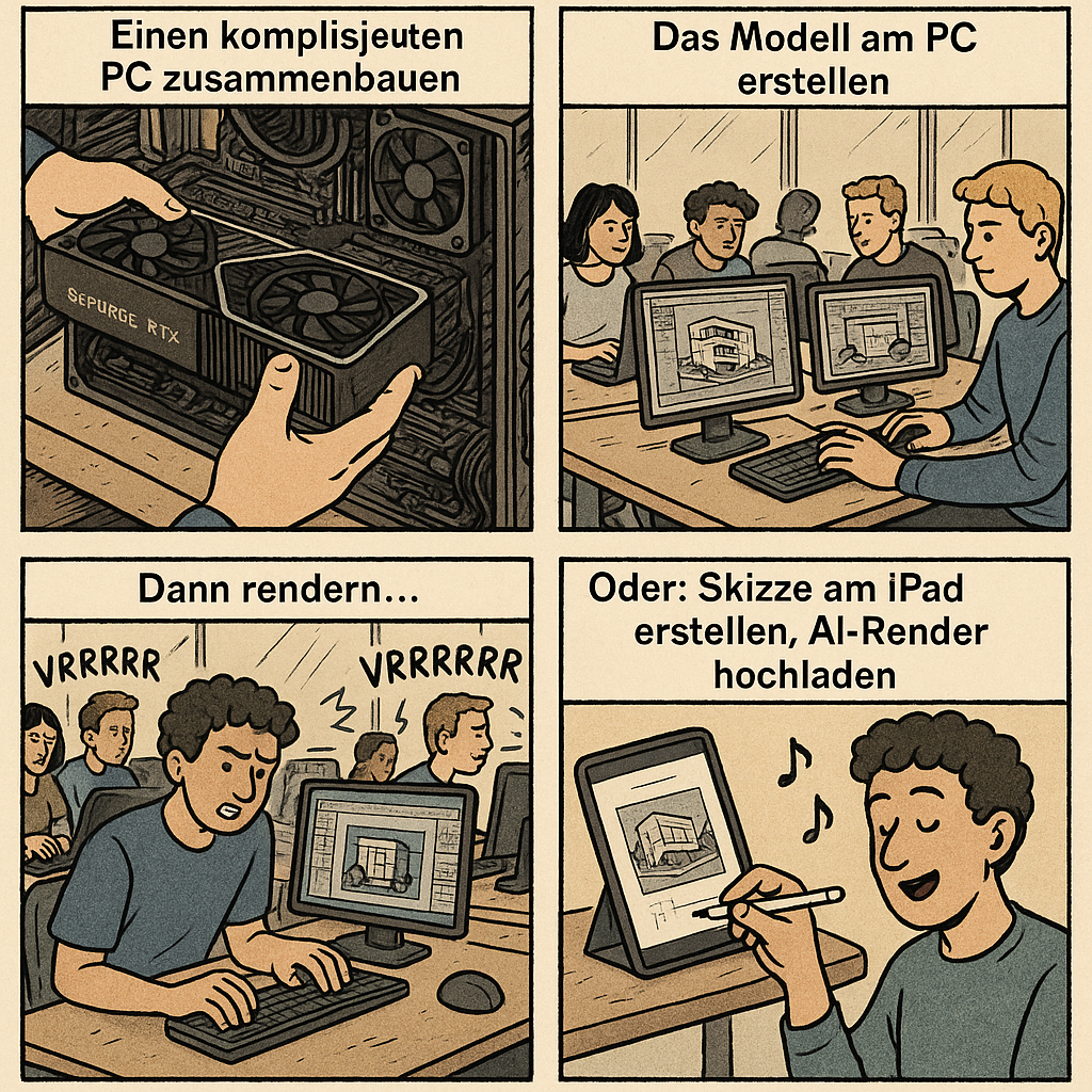 Besonders spannend war für uns die Erkenntnis, dass sich KI-Bilder hervorragend mit Handskizzen kombinieren lassen – vor allem in der frühen Entwurfsphase, wo es auf Schnelligkeit und Atmosphäre ankommt.