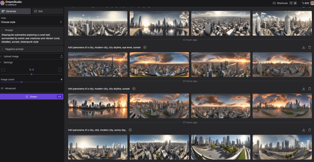 Am Anfang unserer Reise testeten wir verschiedene KI-basierte Bildgenerierungstools wie MidJourney und Stable Diffusion. Dabei probierten wir zahlreiche Plattformen aus, verglichen Qualität, Geschwindigkeit und Bedienbarkeit.